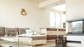 Prízemie: vstupná chodba, samostatná toaleta s umývadlom, detská izba, priestranná kúpeľňa s rohovou vaňou a sprchovým kútom, spálňa so šatníkom, kuchyňa prepojená s obývačkou s krbom a vstupom na prestrešenú terasu orientovanú do záhrady.