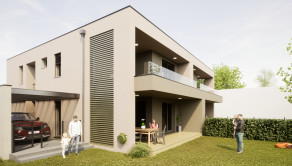 STAV : Dom bude zrealizovaný z pálenej tehly a zateplený polystyrénom, podlahové kúrenie s tepelným čerpadlom vzduch-voda, hliníkové okná s 3-sklom.