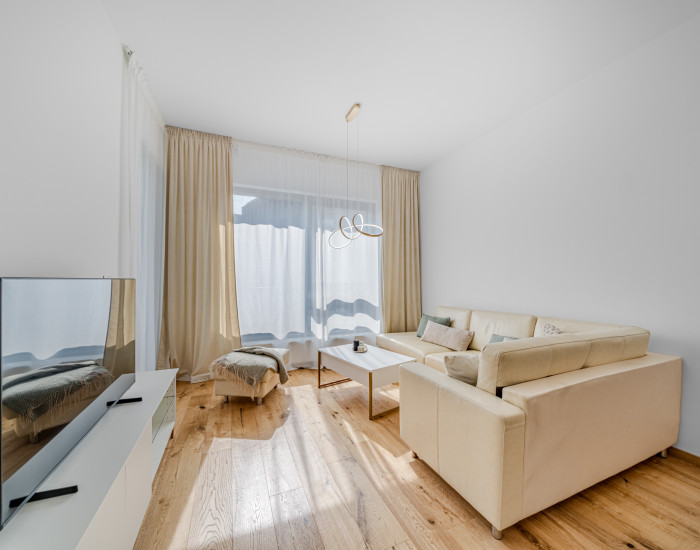 ZARIADENIE: Byt sa prenajíma doteraz nikým neobývaný, kompletne zariadený nadčasovým, kvalitným nábytkom, ktorý ponúka dostatok úložného priestoru. Vo vstupnej chodbe sa nachádzajú šatníkové skrine so zabudovaným zrkadlom. V spálni je otvárateľná manželská posteľ s úložným priestorom, kvalitné matrace s antibakteriálnou úpravou, nočné stolíky a šatníková skriňa. Obývacia časť je vybavená rohovou koženou sedačkou s taburetkou, konferenčným stolíkom, skrinkou pod televízor a samotným televízorom. Kuchyňa disponuje barovým pultom s dvoma barovými stoličkami a veľkou vstavanou kuchynskou linkou so zabudovanými spotrebičmi, medzi ktoré patrí umývačka riadu, indukčná varná doska, mikrovlnná rúra, digestor a elektrická rúra. V kúpeľni sa nachádzajú dve komfortné umývadlá so zrkadlom a práčka so sušičkou, aj úložná skrinka. Byt má drevené podlahy, je vybavený dvoma klimatizačnými jednotkami, jednou v obývačke a druhou v spálni.