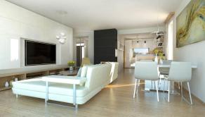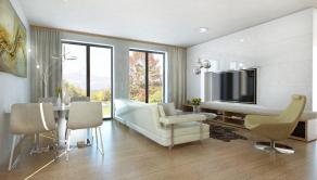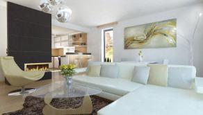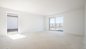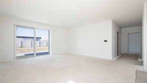 Z predsiene z ľavej strany prejdete plynule do obývačky a veľkorysej kuchyne s jedálenskou časťou ako aj s komorou. Na zastrešenú terasu o výmere 21m2 sa dostanete z obývacej izby.