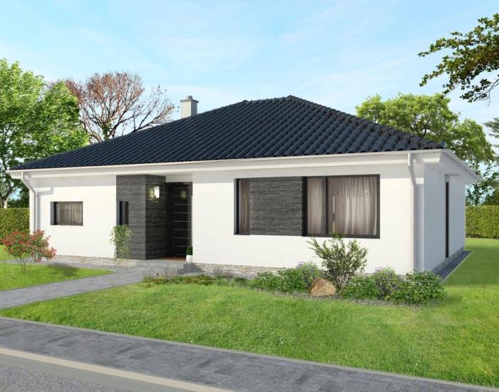 Interiér domu tvorí priestranná vstupná chodba s priestorom na vstavanú skriňu a so vstupom do samostatného WC / technickej miestnosti, chodba vedúca po pravej strane do kľudovej časti domu s troma nepriechodnými spálňami, kúpeľne s vaňou a sprchovým kútom.
