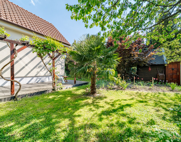 POZEMOK: Je rovinatého charakteru o veľkosti 500 m2, z čoho zastavaná plocha je 135 m2. Na pozemku sa nachádza záhradný domček aj menšia šopa. Záhrada je vkusne upravená, osadená okrasnými rastlinami a stromami, ktoré vytvárajú príjemné súkromie. K domu prislúcha terasa so západnou orientáciou s výhľadom na hrádzu.