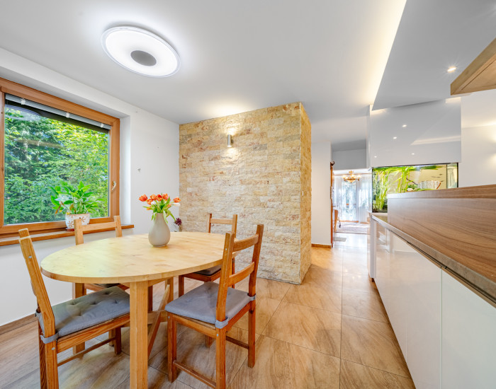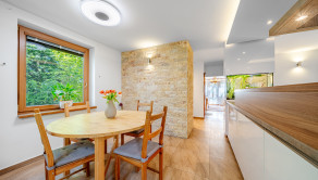 Bol postavený v roku 2001 a v roku 2017 bola väčšia časť domu kompletne zrekonštruovaná. Rekonštrukcia zahŕňa rozvody vody, elektriny, odpadu, nové podlahy, sanita, kuchynská linka na mieru, vstavané skrine. Dom má kombinované vykurovanie – podlahové kúrenie aj radiátory, vlastný plynový kotol a klimatizáciu. V obývacej izbe sa nachádzajú na mieru vyrobené krbové kachle.