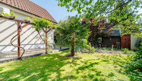 POZEMOK: Je rovinatého charakteru o veľkosti 500 m2, z čoho zastavaná plocha je 135 m2. Na pozemku sa nachádza záhradný domček aj menšia šopa. Záhrada je vkusne upravená, osadená okrasnými rastlinami a stromami, ktoré vytvárajú príjemné súkromie. K domu prislúcha terasa so západnou orientáciou s výhľadom na hrádzu.
