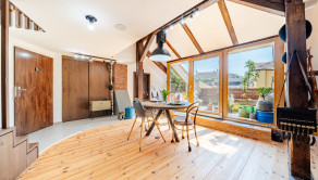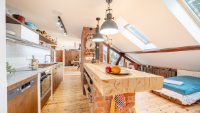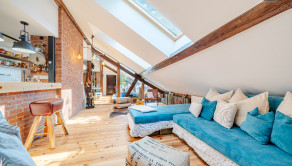 Bosen Group offers for sale a 4-room duplex apartment with a unique spirit. The apartment stands out thanks to a complete renovation, personally supervised by the owners, resulting in an original living space where wood is the predominant material. The apartment features a terrace with an exceptional view of Bratislava Castle. The property is located in the Old Town on Kozia Street.