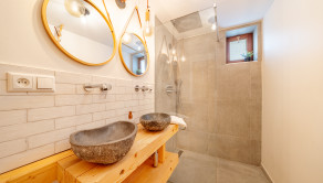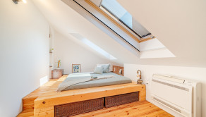 The property underwent a complete renovation in 2020, designed by an architect and interior designer, including new water, electricity, and waste systems. Wood was the main material used during the renovation. The layout of the property is thoughtfully designed down to the last detail, with every “corner” and space having its purpose. Heating is provided by a gas boiler with a storage tank. Air conditioning units are available for the summer months. Built-in ceiling Bluetooth speakers add to the pleasant atmosphere of the apartment.