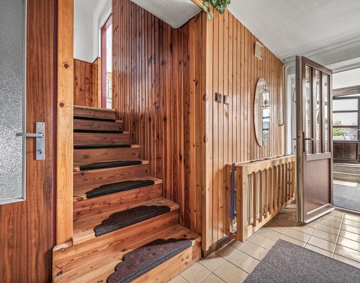 Prvý dom má 3 podlažia a využiteľný priestor v suteréne s kuchyňou. Dom je možné jednoducho rozdeliť na dve samostatné bytové jednotky s vlastnými vstupmi, čo výrazne rozširuje možnosti jeho využitia. Dispozíciu dopĺňa priestranná galéria. Stavba je murovaná a prešla zateplením, výmenou strechy a okien.