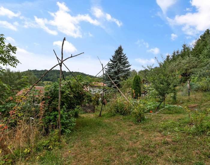 Pozemok je rajom pre milovníkov prírody a sebestačnosti - udržiavaná záhrada s ovocnými kríkmi (egreše, maliny, černice), zeleninová záhrada, ovocný sad s viac ako 30 stromami (jablone, hrušky, slivky, marhule, čerešne) a vlastný les, ktorý na jeseň ponúka bohatú úrodu húb. Mikroklíma a dostatok vody umožňujú rozšírenie sadu či založenie biodynamickej farmy. Na pozemku je aj pivnica, relaxačná miestnosť/mini ateliér a prístrešok.