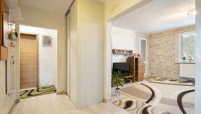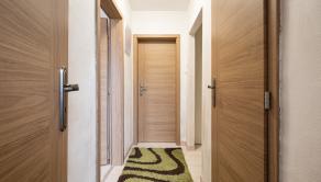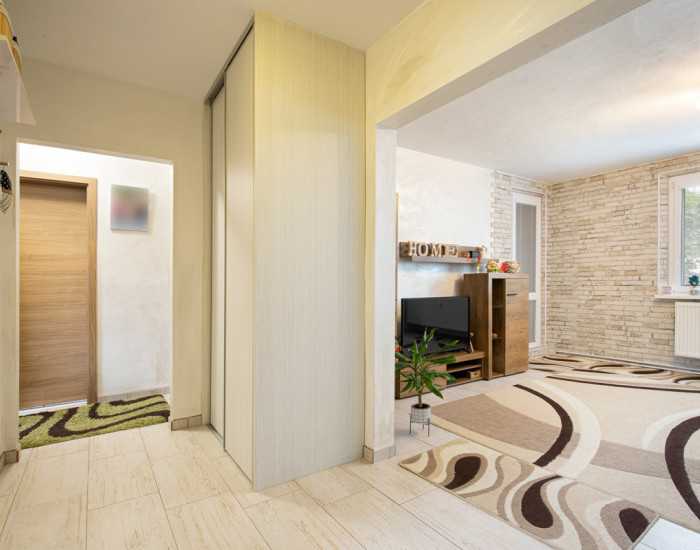 DISPOZÍCIA: Vstupná chodba s odkladacím priestorom a vstavanou skriňou, s plynulým prechodom do obývacej miestnosti odkiaľ je vstup na balkón, z obývacej miestnosti cez chodbu sa vstupuje do kuchyne so spotrebičmi, ďalej je menšia chodba odkiaľ sú vstupy do dvoch samostatných izieb, kúpeľne s vaňou a na toaletu.