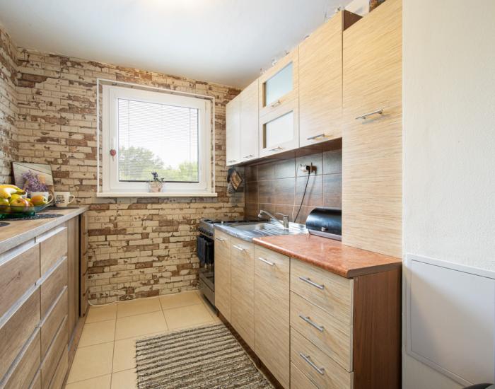 DISPOZÍCIA: Vstupná chodba s odkladacím priestorom a vstavanou skriňou, s plynulým prechodom do obývacej miestnosti odkiaľ je vstup na balkón, z obývacej miestnosti cez chodbu sa vstupuje do kuchyne so spotrebičmi, ďalej je menšia chodba odkiaľ sú vstupy do dvoch samostatných izieb, kúpeľne s vaňou a na toaletu.