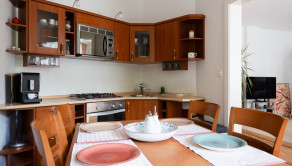 Byt ponúka príjemnú atmosféru pre pokojné bývanie je vybavený kvalitným nábytkom. V chodbe sa nachádza šatník. V obývacej izbe sa nachádza pohodlná kožená sedačka, konferenčný stolík. Spálni komfortná drevená posteľ. Kuchyňa je plne vybavená prémiovými spotrebičmi dennej potreby. Vyhradené parkovacie miesto priamo pri bytovom dome.