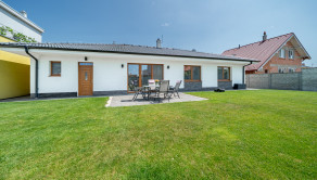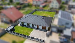 POZEMOK: Je rovinatý s 10 árovou výmerou. Nachádza sa na ňom studňa, na ktorú je napojená automatická závlaha. Robotická kosačka sa postará o trávnatú plochu na pozemku.