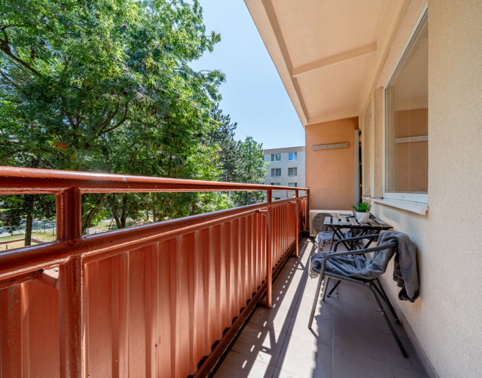 DISPOZÍCIA: Vstupná chodba so vstavanou skriňou, spálňa so vstavanou skriňou, druhá spálňa so vstavanou skriňou, vhodná aj ako detská izba, priestranná obývacia izba s klimatizáciou, kuchyňa s výstupom na loggiu, kúpeľňa s vaňou a samostatné WC. Dve spálne sú orientované na severozápad, obývacia izba s kuchyňou na juhovýchod.
