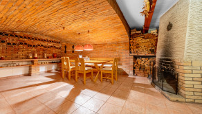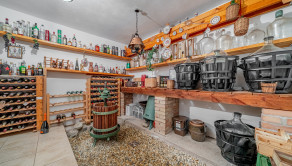 priestranná vstupná hala so šatníkom, samostatná kuchyňa so sedením, technická miestnosť, komora - ideálna na sklad zeleniny, vínna pivnica na skadovanie vína a spracovanie hrozna, priestranná klenbová degustačná pivnica s krbom – ideálna na spoločenské posedenia, praktická dielňa, garáž pre dve autá vybavená jamou na opravu áut, ako aj stropným navijakom na dvíhanie ťažších bremien, WC