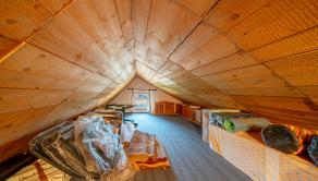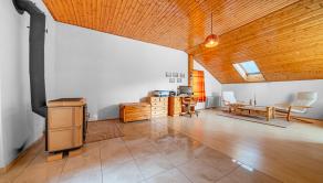 Spálňa / hosťovská izba s dreveným stropom a balkónom, kúpeľňa so sprchovým kútom a WC, úložná miestnosť