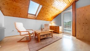 Hlavná spálňa s klimatizáciou a lodžiou, spálňa / hosťovská izba s dreveným stropom a s vlastnou terasou, priechodná izba / pracovňa s výstupom na zadný dvor, kúpeľňa s vaňou, práčovňa, samostatné WC