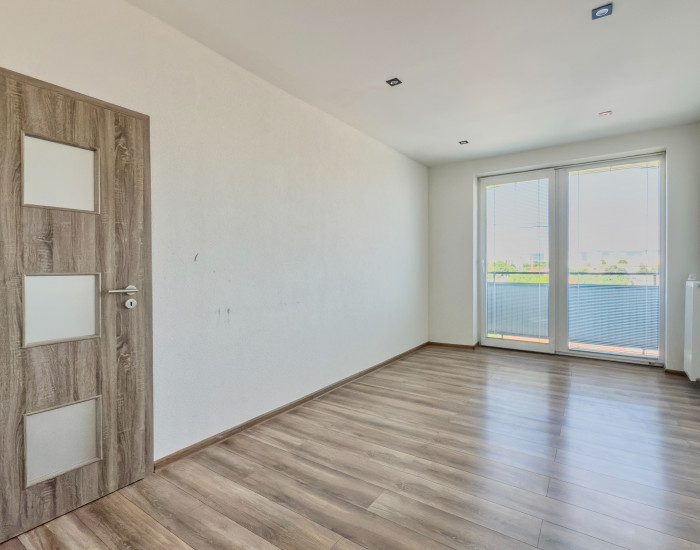 DISPOZÍCIA: Po vstupe do bytu Vás privíta priestranná predsieň, ktorá ponúka dostatok miesta na odkladací priestor. Po ľavej strane je situovaná kúpeľňa vybavená rohovou vaňou, umývadlom a toaletou. Z predsiene vedie chodba, ktorou sa dostanete do kuchyne orientovanej na východnú stranu. Kuchyňa poskytuje dostatok priestoru na stolovanie a je dobre presvetlená. Súčasťou bytu je aj samostatná spálňa s praktickým šatníkom. Hlavný obytný priestor tvorí obývacia izba s výstupom na loggiu cez veľké francúzske okno, ktoré dodáva priestoru vzdušnosť a svetlo. Za obývacou izbou je umiestnená ešte jedna samostatná miestnosť, ktorá môže slúžiť ako detská izba alebo pracovňa podľa potrieb budúcich obyvateľov..