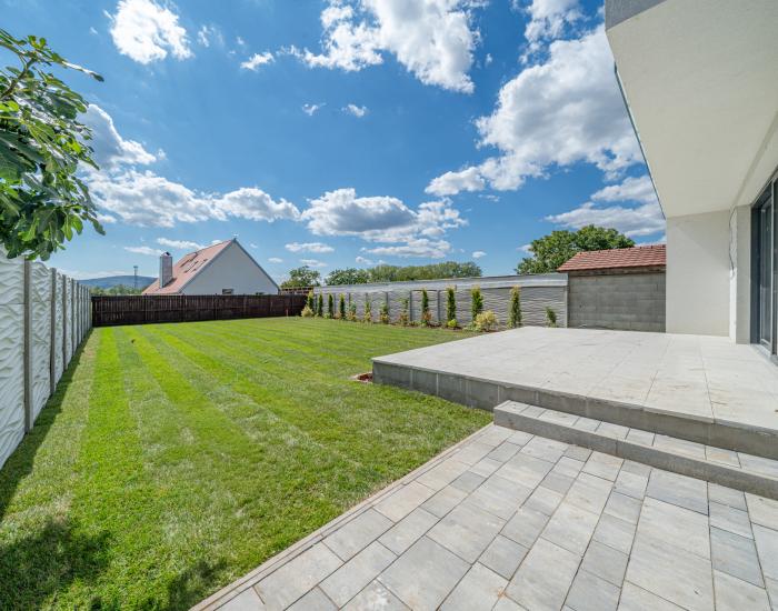 DOM: Tehlový novostavba rodinného domu - 2025. Úžitková plocha rodinného domu bez terás je 165 m2 + terasy spolu vo výmere 32 m2. IS – voda, elektrina, kanalizácia. Dom je dokončený do štandardu bez kuchynskej linky.