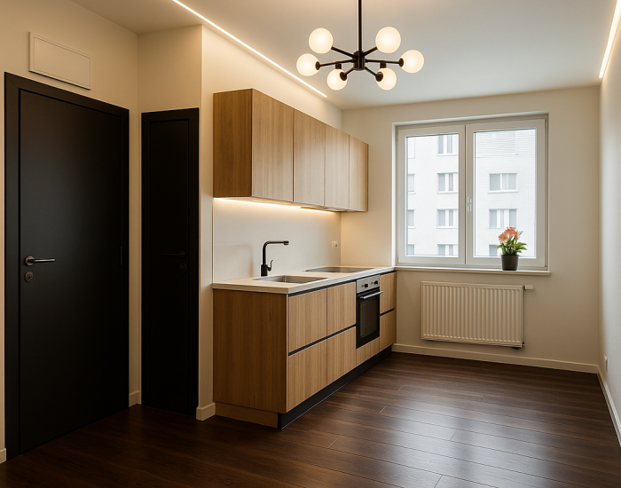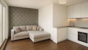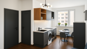 Byt sa predáva spolu so spotrebičmi dennej potreby, práčkou a elektrická rúra značky Whirlpool. V kuchynskej linke je zabudovaná sklo keramická varná doska.