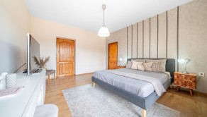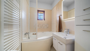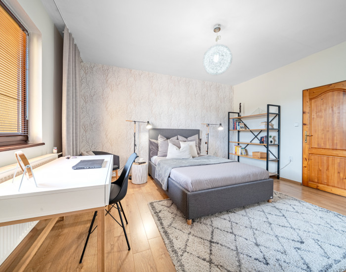 - 2. nadzemné podlažie (90m²) tvorí hlavná spálňa s veľkým šatníkom a úložným priestorom, 2 samostatné nepriechodné izby, pracovňa a kúpeľňa s vaňou.