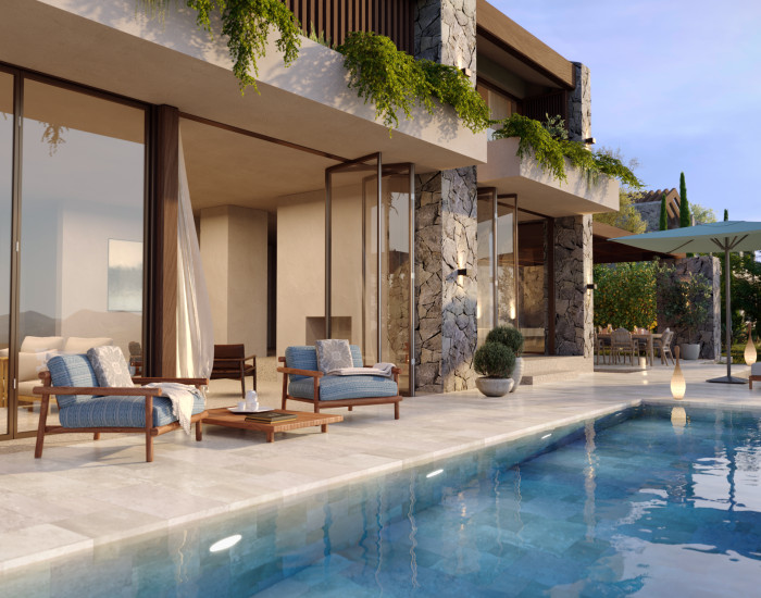 VILA: Exkluzívny townhouse s úžitkovou plochou 185,25m2 ponúka veľkorysý obytný priestor na pozemku s rozlohou 868m2 , pozostávajúci z 3 spální, priestrannej obývacej izby s priamym vstupom na terasu, galérie a moderne vybavenej kuchyne a troch kúpeľní. K dispozícii je súkromný bazén (31m2),terasa (82m2), upravená záhrada (483m2), privátne parkovanie (26m2) a množstvo dizajnových prvkov, ktoré dotvárajú pocit absolútneho komfortu.