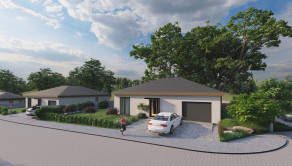 SAMOSTATNE STOJACI RODINNÝ DOM: v ponuke sú 2 prízemné 4 izbové rodinné domy s úžitkovou plochou 116,22m2 + garáž s elektrickou bránou 19,6m2 + terasa 12m2. Domy budú postavené do štádia "štandard"- vymaľované steny, osadené vypínače, zásuvky, interiérové dvere a zárubne, obklady a sanita v kúpeľniach vrátane dokončeného exteriéru - oplotenie, brána a vybudované parkovacie miesta pred domom. Farebné prevedenie štandardu je voliteľné. V cene je predpríprava na vonkajšie elektrické žalúzie, klimatizácia, alarm a fotovoltiku. Vykurovanie bude zabezpečené tepelným čerpadlom. Domy budú napojené na elektrinu, vodu, kanalizáciu a optickú sieť. Projekt je v štádiu prípravy výstavby (realizácia inžinierských sietí) predpokladaný termín zahájenia výstavby rodinných domov je koniec roka 2025 a predpokladaný termín dokončenia je v prvej polovici roka 2027.