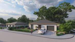 SAMOSTATNE STOJACI RODINNÝ DOM: v ponuke sú 2 prízemné 4 izbové rodinné domy, ktoré je možné po zapracovaní zmien postaviť ako 5 izbové. Domy budú postavené do štádia "štandard"- vymaľované steny, osadené vypínače, zásuvky, interiérové dvere a zárubne, obklady a sanita v kúpeľniach vrátane dokončeného exteriéru - oplotenie, brána a vybudované parkovacie miesta pred domom. Farebné prevedenie štandardu je voliteľné. V cene je predpríprava na vonkajšie elektrické žalúzie, klimatizácia, alarm a fotovoltiku. Vykurovanie bude zabezpečené tepelným čerpadlom. Domy budú napojené na elektrinu, vodu, kanalizáciu a optickú sieť. Projekt je v štádiu prípravy výstavby (realizácia inžinierských sietí) predpokladaný termín zahájenia výstavby rodinných domov je koniec roka 2025 a predpokladaný termín dokončenia je v prvej polovici roka 2027.