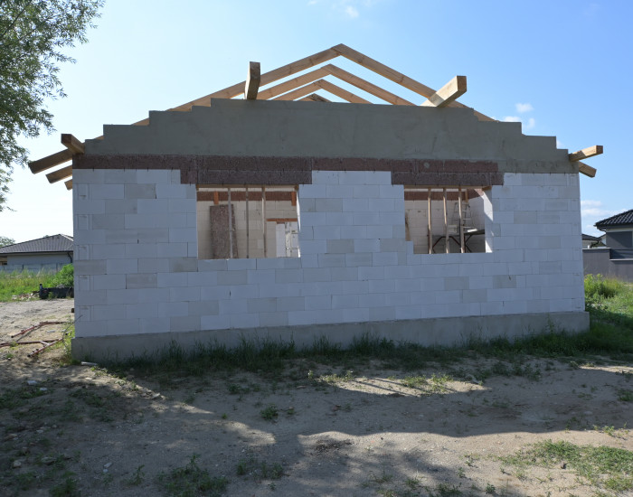 RODINNÝ DOM: novostavba, celková zastavaná plocha je 123,50 m2 a úžitková plocha je 100,2 m2. Rodinný dom má 4 obytné izby a je vyhotovený z kvalitných materiálov. Betónové základy s vodorovnou izoláciou proti zemnej vlhkosti, obvodové murivo je Ytong hrúbky 30 cm, zateplenie rodinného domu je polystyrén hrúbky 15 cm, krov je drevený sedlového tvaru, strešná krytina je betónová škridla Bramac, zateplenie strechy je minerálna vlna hrúbky 30 cm. Kúrenie je teplovodné podlahové a zároveň na ohrev vody slúži tepelné čerpadlo, plastové okná s izolačným 3 sklom, vstupné dvere hliník plast, vápenocementové omietky, pochôdzna povala, betónová terasa s ventilom na vodu, vonkajšie parkovacie státia a prístupový chodník do domu zo zámkovej dlažby. Predpríprava na krb, vonkajšie elektrické žalúzie, elektrickú bránu, klimatizáciu, alarm, kamerový systém a fotovoltaiku. Oplotenie pletivový plot z troch strán. Vyhotovenie holodom, možnosť dokončenia do štandardu.
