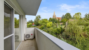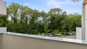 • Veľký balkón s výhľadom na zeleň a druhý balkón na upravený vnútroblok