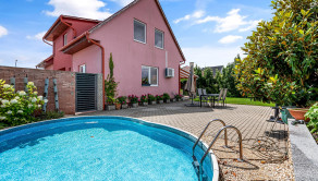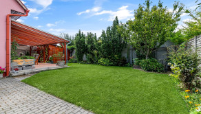 POZEMOK: Je rovinatý s 2,3 árovou plochou. V záhrade je množstvo krásnych kvetov a vyvýšené záhony. Na pozemku je veľký záhradný domček. V druhej časti pozemku sa nachadza záhradná sprcha a bazén veľkosti 5m dĺžky.
