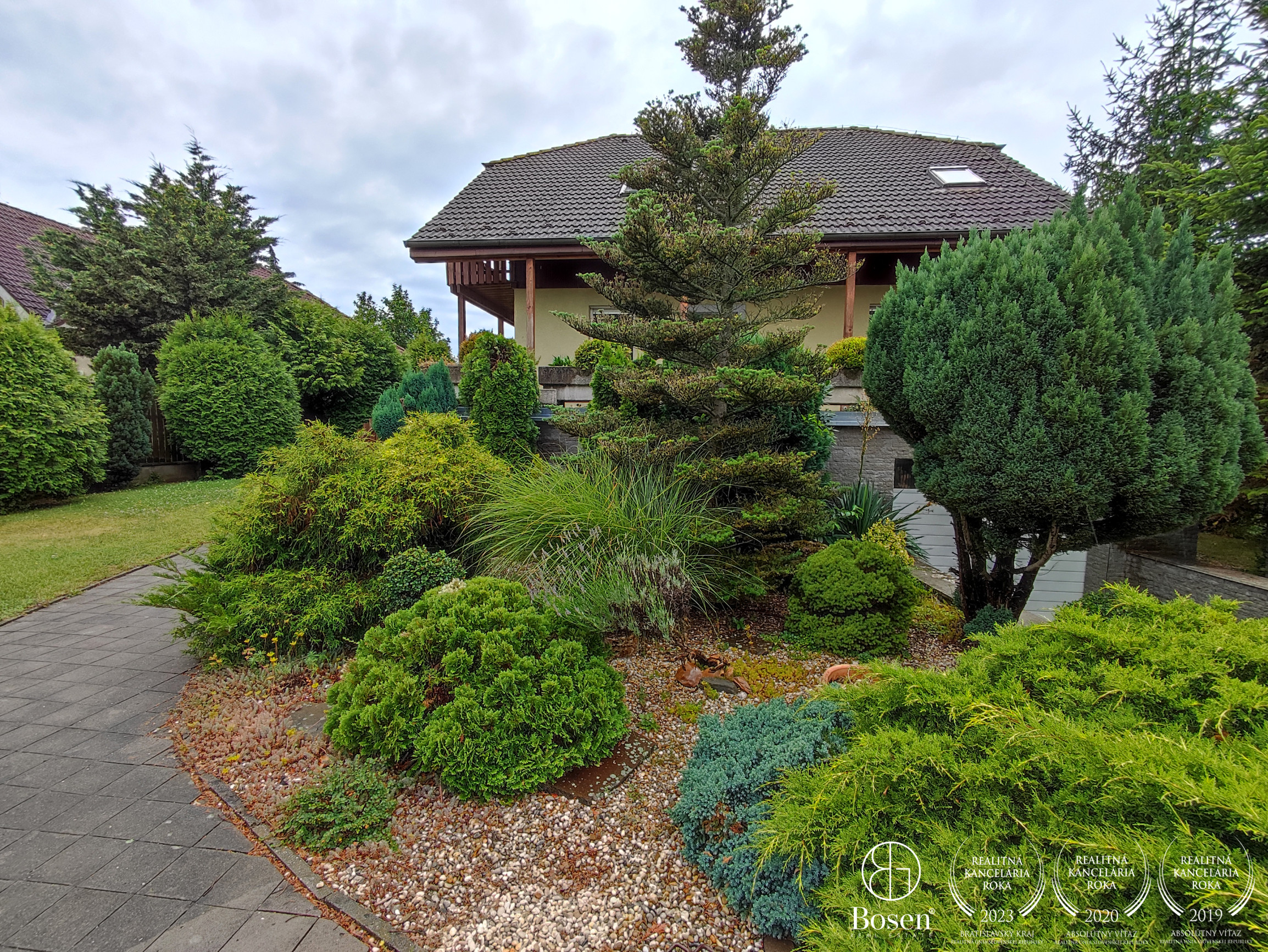 POZEMOK: Celková plocha pozemku je 977 m2. Pozemok je rovinatý a úplne oplotený. Je veľmi dobre udržiavaný a rozsiahla záhrada je vysadená okrasnými drevinami. Na pozemku je studňa, cez ktorú je riešená závlaha a polievanie záhrady.