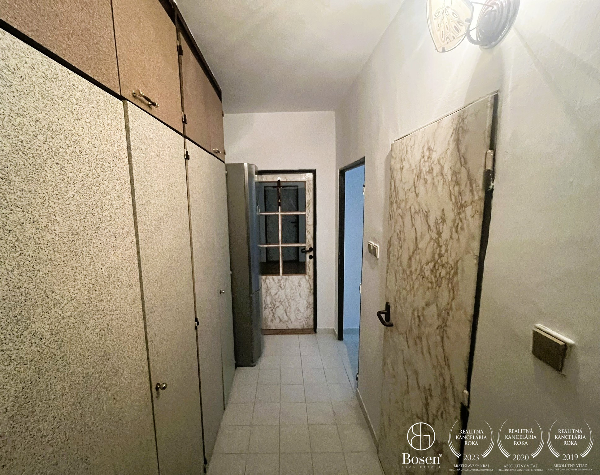 DISPOZÍCIA: Vstupná chodba so samostatným sociálnym zariadením a kúpeľňou. Z chodby je vstup chodbičkou do kuchyne so vstavanou skriňou a do prechodnej obývacej izby, z ktorej je vstup do druhej izby.