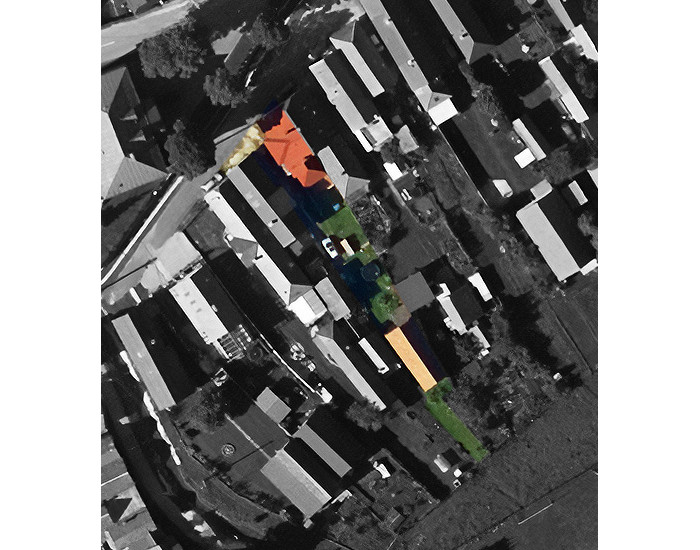 K domu patrí pozemok o výmere 378 m². Súčasťou predaja je tiež 1/2 podiel na spoločnom dvore o rozlohe 206 m², ktorý je využiteľný napr. ako priestor na záhradu alebo oddych. Súčasťou je aj humno, ktoré sa nachádza v zadnej časti pozemku.