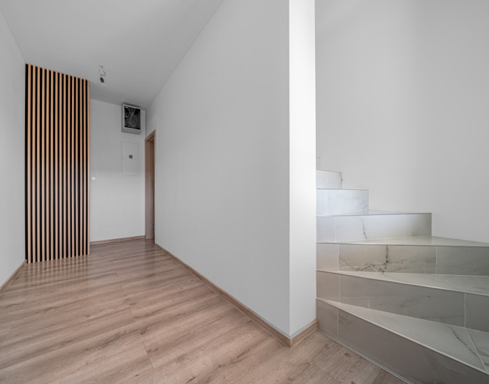 DOM: Rodinný dom ponúka úžitkovú plochu 97 m2 + balkkón 3 m2a je rozdelený na dve nadzemné podlažia. Byt sa predáva v stave štandard s komplet vybavenou kuchynskou linkou a dispozične pozostáva zo vstupnej chodby, priestrannej izby s kuchynským kútom so zabudovanými elektrospotrebičmi., tri nepriechodné izby, kúpeľňu s WC, samostatné WC, balkón. Byt je vybavený kvalitnými materiálmi či modernou technológiou a izoláciou medzi bytmi. Kúrenie je podlahové zabezpečené tepelným čerpadlom, ktoré zaručuje či už vykurovanie alebo chladenie. Každé okno je vybavené vonkajšími elektrickými žalúziami s reguláciou svetla. Kolaudácia tohto rodinného domu bola v druhej polovici roku 2023.