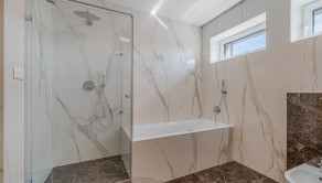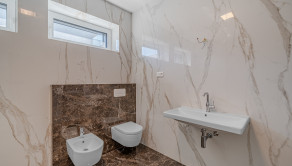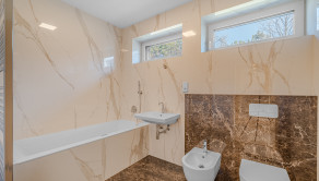VYBAVENIE: Tento byt je vybavený najmodernejšími technológiami, ktoré poskytujú komfortné a efektívne bývanie. Byt má inteligentný systém (smart home), ktorý umožňuje ovládať kúrenie, chladenie, osvetlenie a bezpečnostný alarm. Stropné kúrenie a chladenie zabezpečujú optimálnu klímu v interiéri, pričom reverzné čerpadlo umožňuje efektívnu reguláciu tepla. Dvere sú bezzárubňové. V kúpeľniach sa nachádzajú kvalitné zariadenia značky Villeroy & Boch. Okna sú hliníkové s trojsklami v antracitovej farbe a zabezpečujú vynikajúcu tepelnoizolačnú schopnosť a taktiež je vybavený alarmom a videovrátnikom pre maximálnu bezpečnosť obyvateľov. Interiér je navrhnutý s dôrazom na detaily a kvalitné materiály, pričom sú tu dizajnové osvetlenia a lustre, ktoré dodávajú bytu eleganciu.