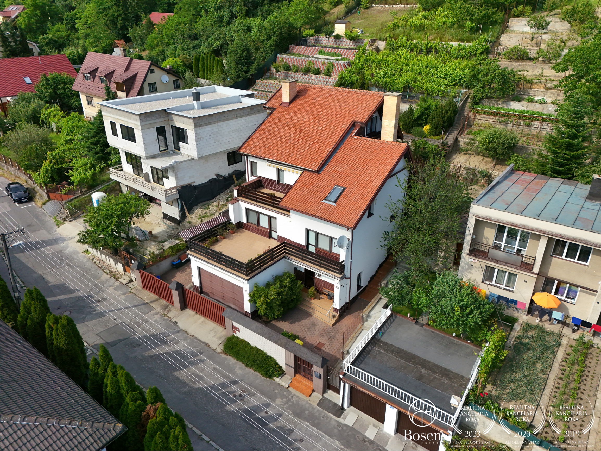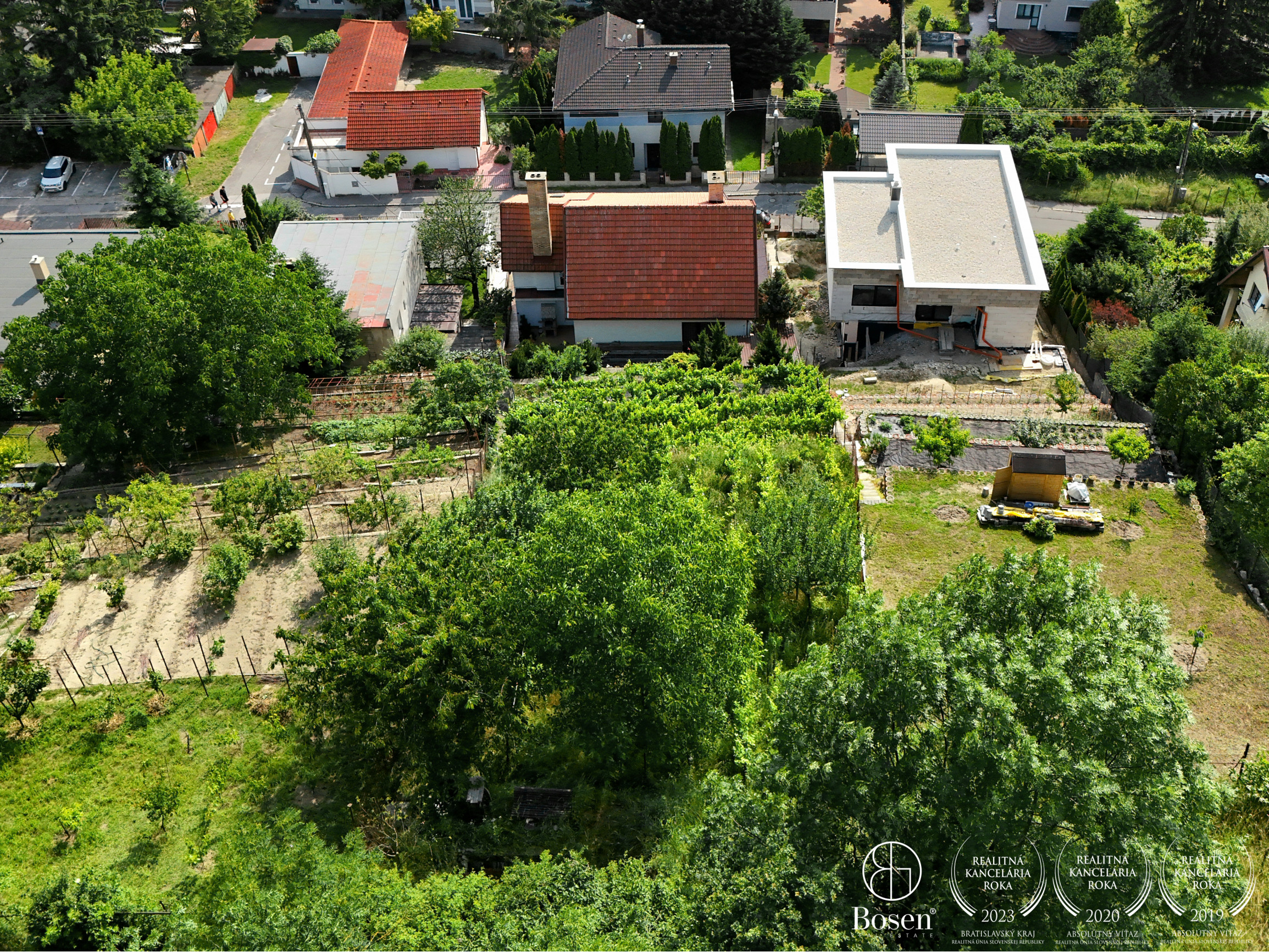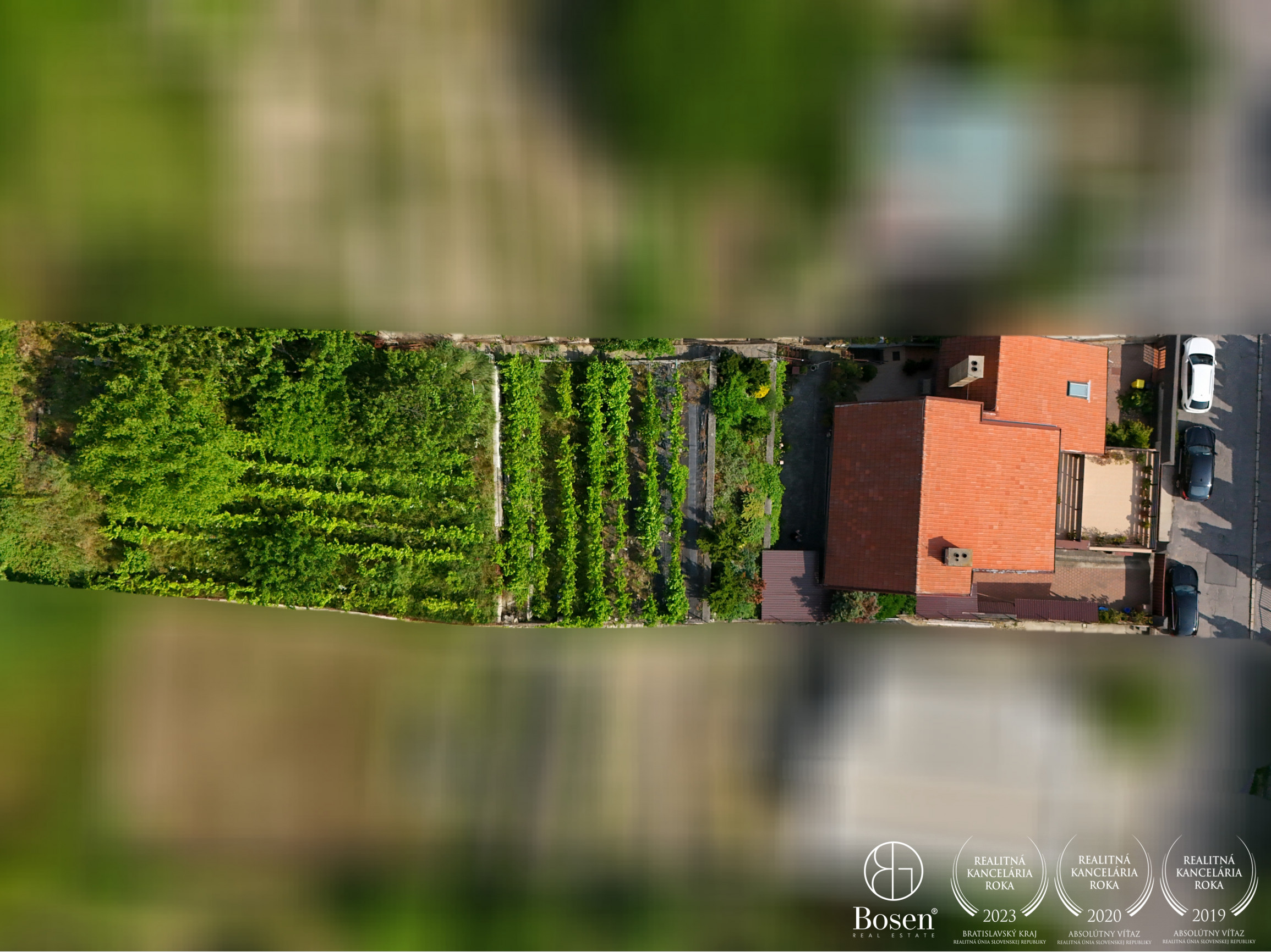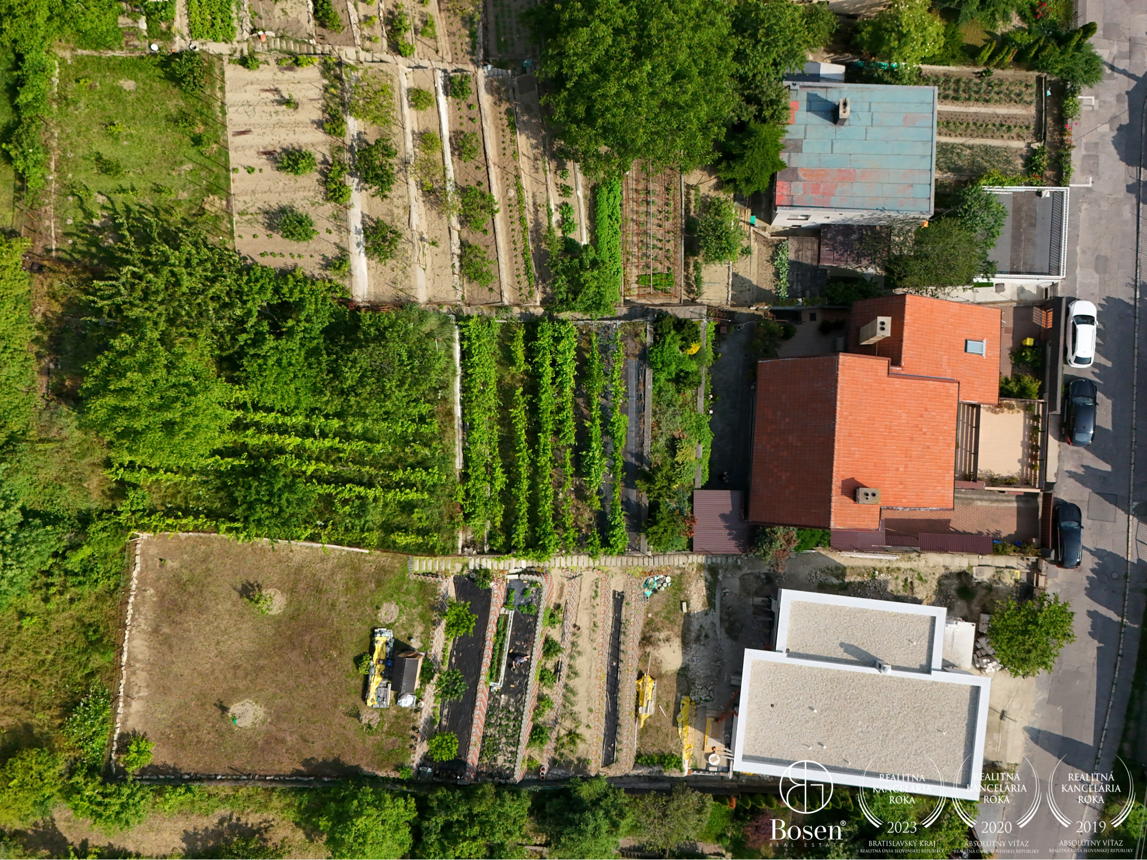 plochy a 414 m² patrí k udržiavanej záhrade, vinohradu, sadovej časti. Záhrada disponuje ovocnými stromami, viničom a dostatkom priestoru na oddych či pestovanie. Vďaka umiestneniu v svahovitej časti Líščieho údolia pozemok poskytuje príjemný výhľad a dostatok súkromia. Navyše ponúka možnosť doplnenia ďalších prvkov, ako je napríklad bazén.