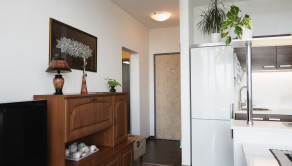 ZARIADENIE: Vstavaná skriňa v spálni, posteľ, nábytková zostava v obývačke, kuchynská linka. Byt je klimatizovaný.