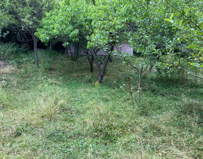 POZEMOK: Je o výmere 823 m2, obklopený lesom, mierne svahovitého charakteru, v tvare štvorca s úzkou príjazdovou cestou. K pozemku sa dostanete z bratislavskej Dúbravky najskôr asfaltovou, neskôr lesnou cestou. V lokalite sa nachádzajú ďaľšie záhrady a rekreačné domy. Na pozemku je situovaná jedna menšia chatka so zavedenou elektrinou.