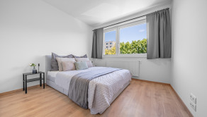 DISPOZÍCIA: Byt ponúka praktické a funkčné dispozičné riešenie. Zo vstupnej chodby sa vstupuje do priestrannej hlavnej spálne so skriňou, ako aj do svetlej obývacej izby prepojenej s kuchyňou. Z obývacej časti je priamy vstup do ďalšej izby, ktorá aktuálne slúži ako spálňa, no môže byť využitá aj ako hosťovská izba, pracovňa či detská izba. Z obývačky sa zároveň vychádza na balkón. Byt disponuje kúpeľňou s vaňou a samostatnou toaletou.
