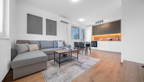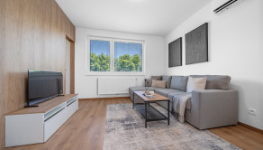 ZARIADENIE: Byt je kompletne zariadený moderným nábytkom, pripravený na okamžité nasťahovanie. Hlavná spálňa disponuje manželskou posteľou a priestrannou skriňou. Kuchyňa je vybavená kvalitnou kuchynskou linkou s umývačkou riadu a chladničkou s mrazničkou. Obývacia izba ponúka pohodlnú sedaciu súpravu, konferenčný stolík, televízor s TV stolíkom a klimatizačnú jednotku. V ďalšej izbe sa nachádza posteľ, ktorú je možné ponechať alebo prispôsobiť novému využitiu miestnosti. Kúpeľňa je vybavená vaňou a práčkou, toaleta je samostatná.
