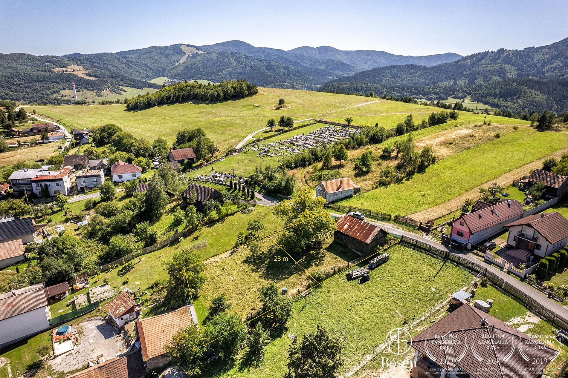 POZEMOK: Je o výmere 1000 m², lichobežnikového tvaru o rozmere š23m x d37m - 48m, mierne svahovitý, slnečný a kompletne oplotený. Pozemok je vhodný na výstavbu rodinného domu alebo rekreačnej chalupy a predstavuje ideálnu voľbu pre tých, ktorí hľadajú pokojné bývanie v prírode s výbornou dostupnosťou do okolitých miest.