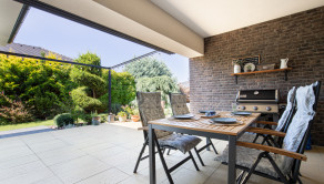 ZÁHRADA A OKOLIE: Nehnuteľnosť sa nachádza na pozemku o výmere 751 m², ktorý ponúka nerušený pokoj a súkromie jeho budúcim majiteľom. Samozrejmosťou je zavlažovací systém, trávnikový koberec, vlastná studňa. Odvod dažďovej vody je vyriešený zbernou šachtou s prirodzeným vsakovaním do pôdy, čo eliminuje kaluže a podmáčanie záhrady. Oplotenie je bariérové, murované. Kompletná záhradná architektúra spĺňa očakávania aj najnáročnejších klientov – spája funkčnosť, estetiku a individuálny prístup. Okrem bohatej zelene je tu aj vlastná wellness zóna so saunou a priestorom na relax. K pohodlnému parkovaniu prispieva nielen dvojgaráž, ale aj rozsiahla spevnená plocha priamo pred domom.