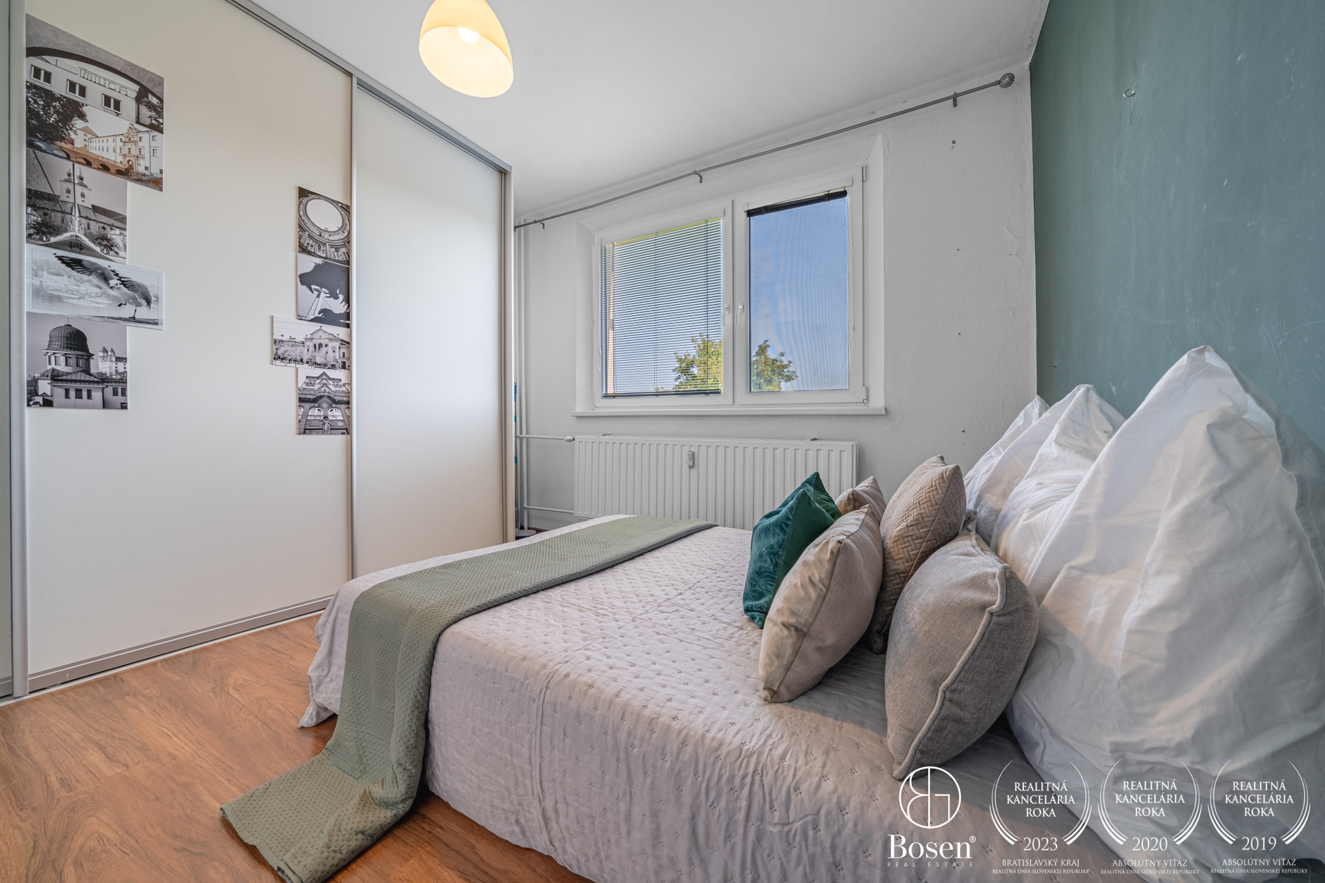 BYT: Má 54,24 m2 bez balkónu (3,5 m2) a pivnice (3,11 m2). Nachádza sa na 2/4 poschodí bez výťahu. Byt prešiel kompletnou rekoštrukciou v roku 2005. Denná časť je orientovaná na juhozápad a spálňa na severovýchod do pokojnej a tichej časti.