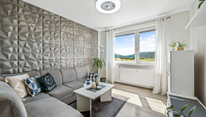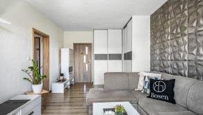 - obývacia izba s rohovým gaučom, konferenčným stolíkom, obývacou zostavou a vstavanou skriňou