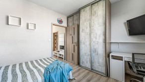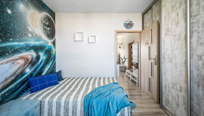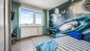 - detská izba/spálňa vybavená vstavanou skriňou, písacím stolom a TV, s výhľadom na ihrisko vo vnútrobloku