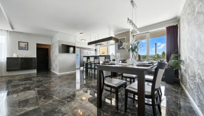 DISPOZÍCIA A VYBAVENIE: Byt sa nachádza na najvyššom, piatom poschodí bytového domu s výťahom. Vstupná chodba ponúka dostatok úložného priestoru, z nej sa vstupuje do priestrannej obývacej izby prepojenej s kuchyňou a jedálňou. Kuchyňa je vybavená spotrebičmi a praktickou špajzou. Denná časť má priamy výstup na obe terasy. V byte sa nachádza hlavná spálňa a dve izby, ktoré je možné využiť ako detské izby/pracovňu/hosťovské izby. K dispozícii sú dve kúpeľne – prvá je vybavená vaňou, sprchovacím kútom, toaletou a priestorom pre práčku aj sušičku, druhá kúpeľňa má sprchovací kút a toaletu. Z nočnej časti je prístupný aj balkón. Komfort bývania dopĺňa podlahové kúrenie, klimatizácia, exteriérové žalúzie a dominantný krb, ktorý vytvára príjemnú atmosféru. V roku 2025 bola v byte vymenená podlaha. K bytu prislúcha pivnica o veľkosti 4,04 m2.