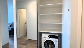 DISPOZÍCIA: predsieň so vstavanou skriňou a priestorom na práčku, obývacia izba spojená s kuchyňou a vstupom na balkón, samostatná spálňa s manželskou posteľou (king size), kúpeľňa s vaňou a elektrickým radiátorom, samostatné WC so závesným systémom a automatickým odsávaním