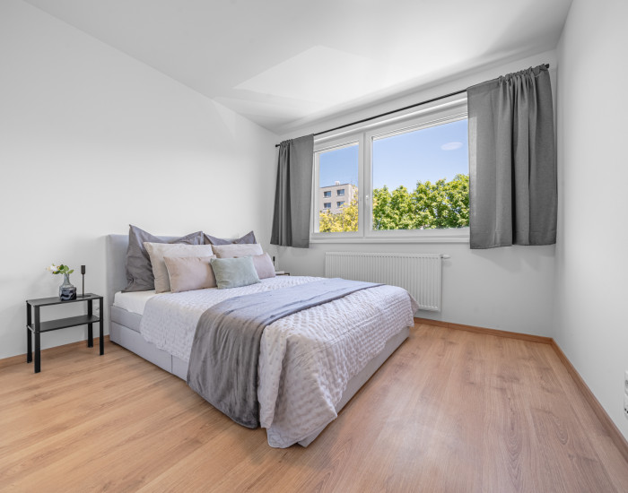 DISPOZÍCIA: Byt ponúka praktické a funkčné dispozičné riešenie. Zo vstupnej chodby sa vstupuje do priestrannej hlavnej spálne so skriňou, ako aj do svetlej obývacej izby prepojenej s kuchyňou. Z obývacej časti je priamy vstup do ďalšej izby, ktorá aktuálne slúži ako spálňa, no môže byť využitá aj ako hosťovská izba, pracovňa či detská izba. Z obývačky sa zároveň vychádza na balkón. Byt disponuje kúpeľňou s vaňou a samostatnou toaletou.