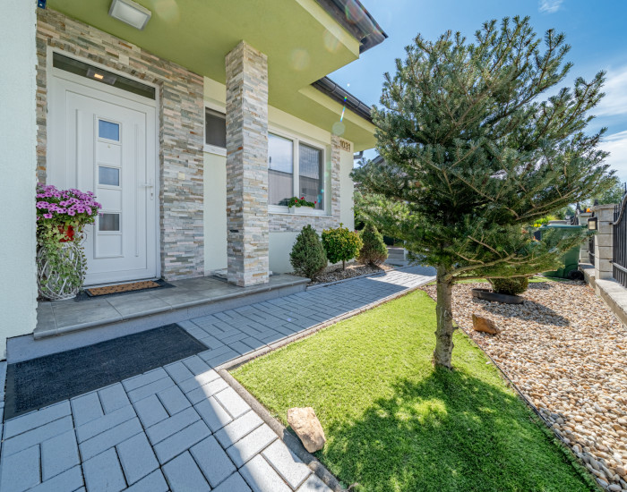 POZEMOK: výmera pozemku je 429m2, pozemok sa dá predĺžiť prikúpením ďalšieho pozemku. Terasa je prestrešená, na pozemku sa nachádza aj záhradný domček, studňa 9m hlboká (polievanie záhrady) a bazén. Na pozemku je možné parkovať 2 autá pod prístreškom. Celý pozemok je udržiavaný, tvorí ho nádherná okrasná záhradka s rybníčkom.