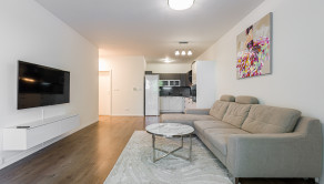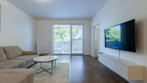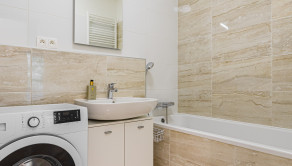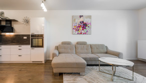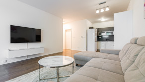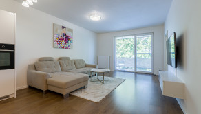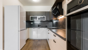 ZARIADENIE: Byt je kompletne zariadený a pripravený na okamžité nasťahovanie. Vo vstupnej hale sa nachádza skriňa – botník a vstavaný rolldor, ktoré poskytujú praktický úložný priestor. Obývacia izba je vybavená rohovou sedačkou, konferenčným stolíkom, televízorom umiestneným na stene, modernou TV skrinkou a kobercom. Z obývacej časti je priamy výstup na loggiu, ktorá ponúka pokojný výhľad orientovaný do kľudnej zóny s minimálnou premávkou. Kuchyňa je zariadená kuchynskou linkou na mieru so vstavanými spotrebičmi – chladničkou s mrazničkou, umývačkou riadu, elektrickou rúrou, indukčnou varnou doskou a digestorom – a ponúka dostatok úložného priestoru. Spálňa je vybavená manželskou posteľou s matracom, nočnými stolíkmi, komodou a veľkou šatníkovou skriňou. V kúpeľni sa nachádza vaňa, umývadlo a práčka, pričom toaleta je riešená samostatne.